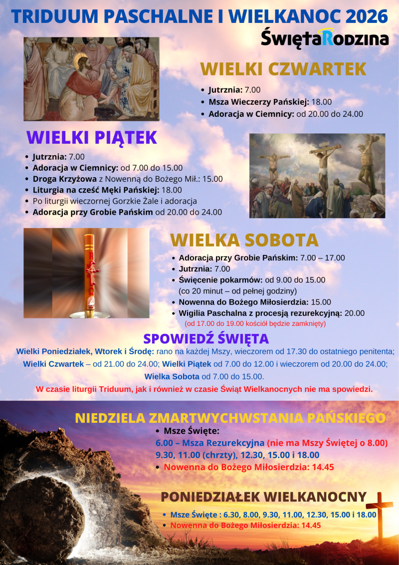 Rozkład Mszy, nabożeństw i spowiedzi na Triduum Paschalne i Święta Wielkanocne